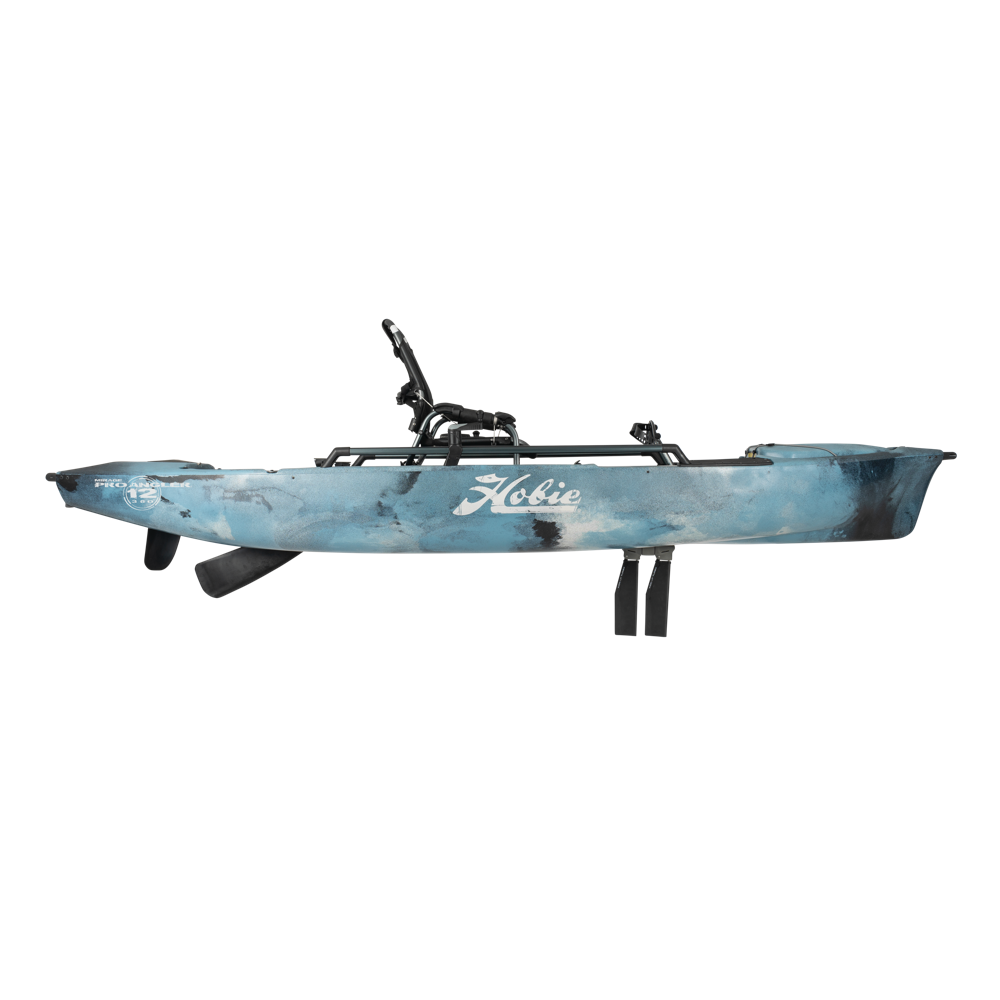 The PA 12 is packed full of features including six rod holders, fully adjustable and ultra comfortable elevated Vantage ST seat with BOA lumbar support, Guardian retractable transducer shield, H-Rail for easy integration with accessories, front and center hatch with stain-resistant EVA grip pads, dual steering and extra wide hull for maximum stability. It now also comes with 3 new H Plates and 2 three way thru hull plugs for wire management as well as a new Hobie Powerwall for more electronics management.